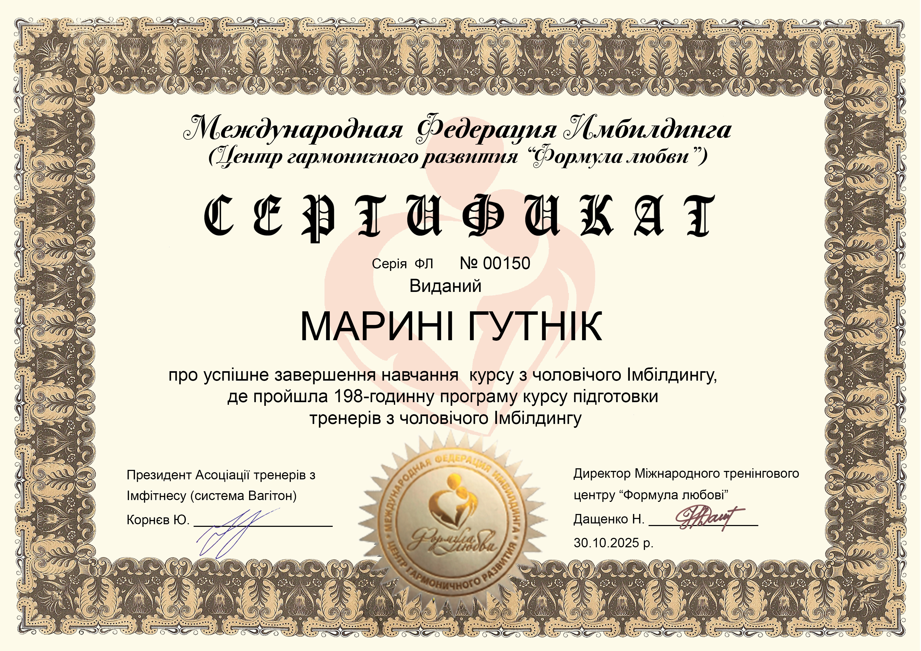 СЕРТИФІКОВАНИЙ ТРЕНЕР ФЕДЕРАЦІЇ З ЧОЛОВІЧОГО ІМФІТНЕСУ
