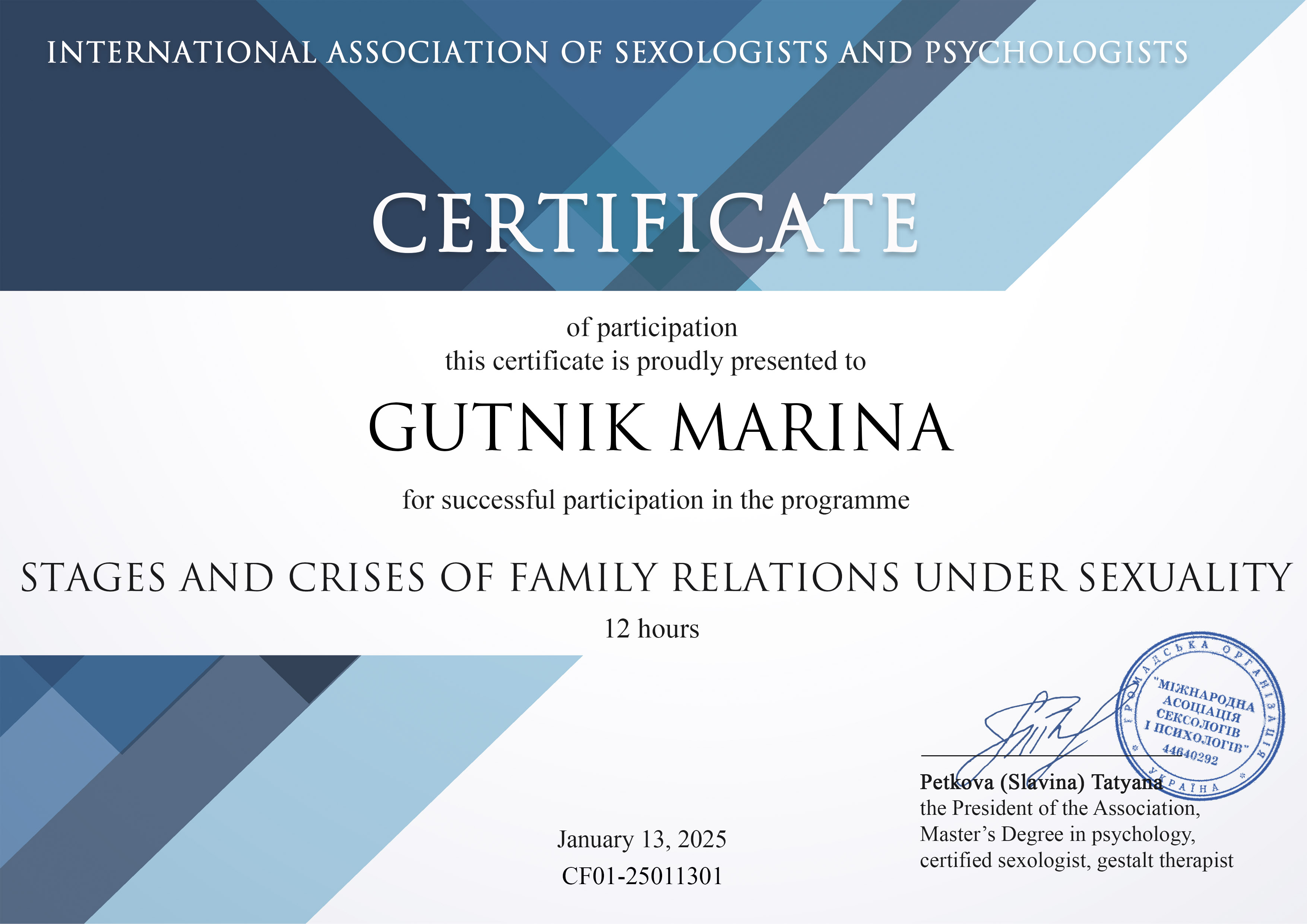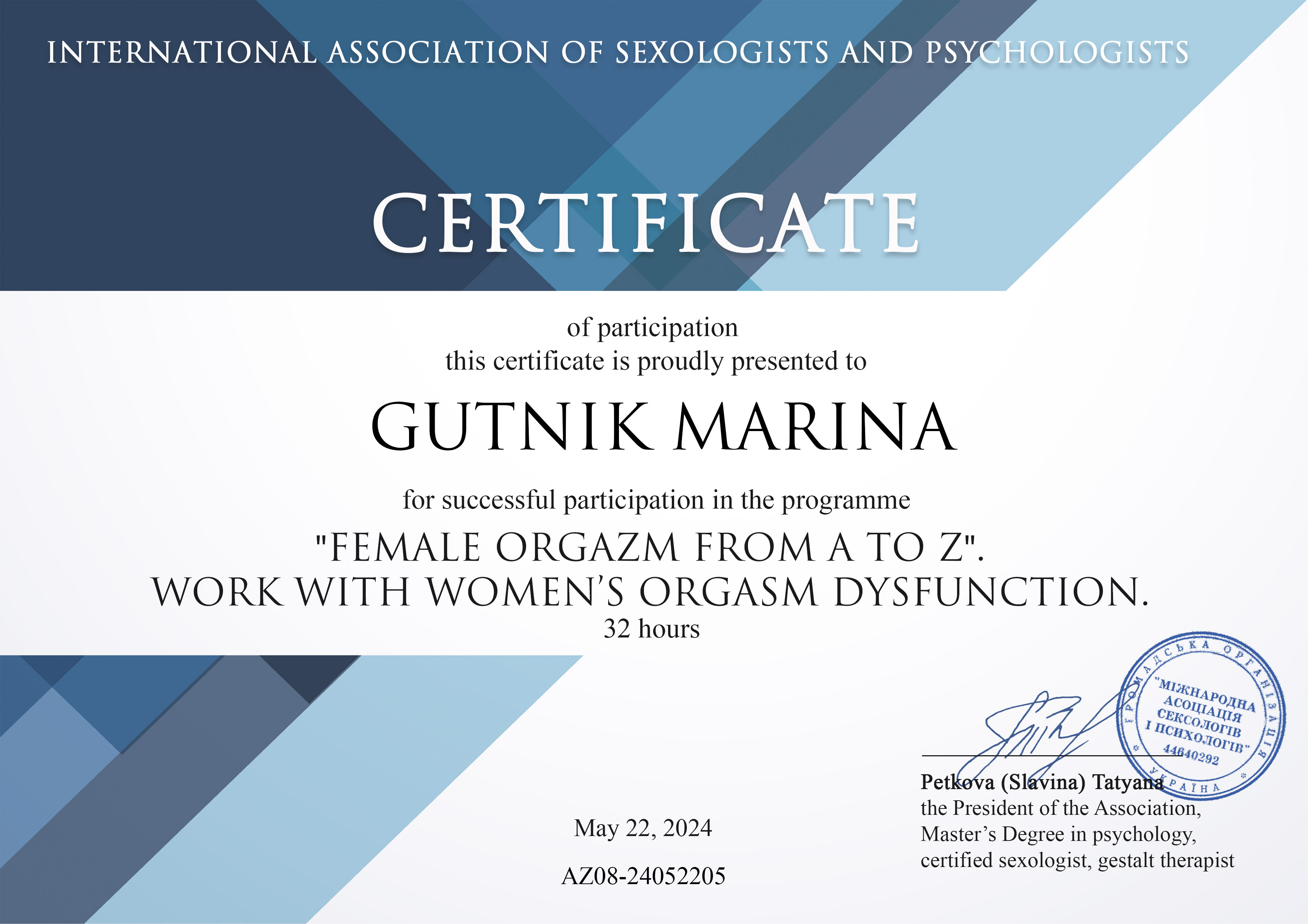 Я Марина Гутник, Сертифікований консультант із сексуального благополуччя.